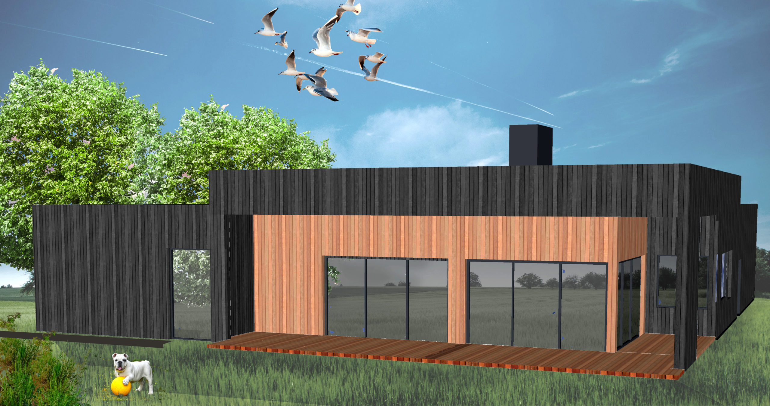 Ściany – pustak ceramiczny 25 cm, wełna mineralna 20 cm, drewno elewacyjne