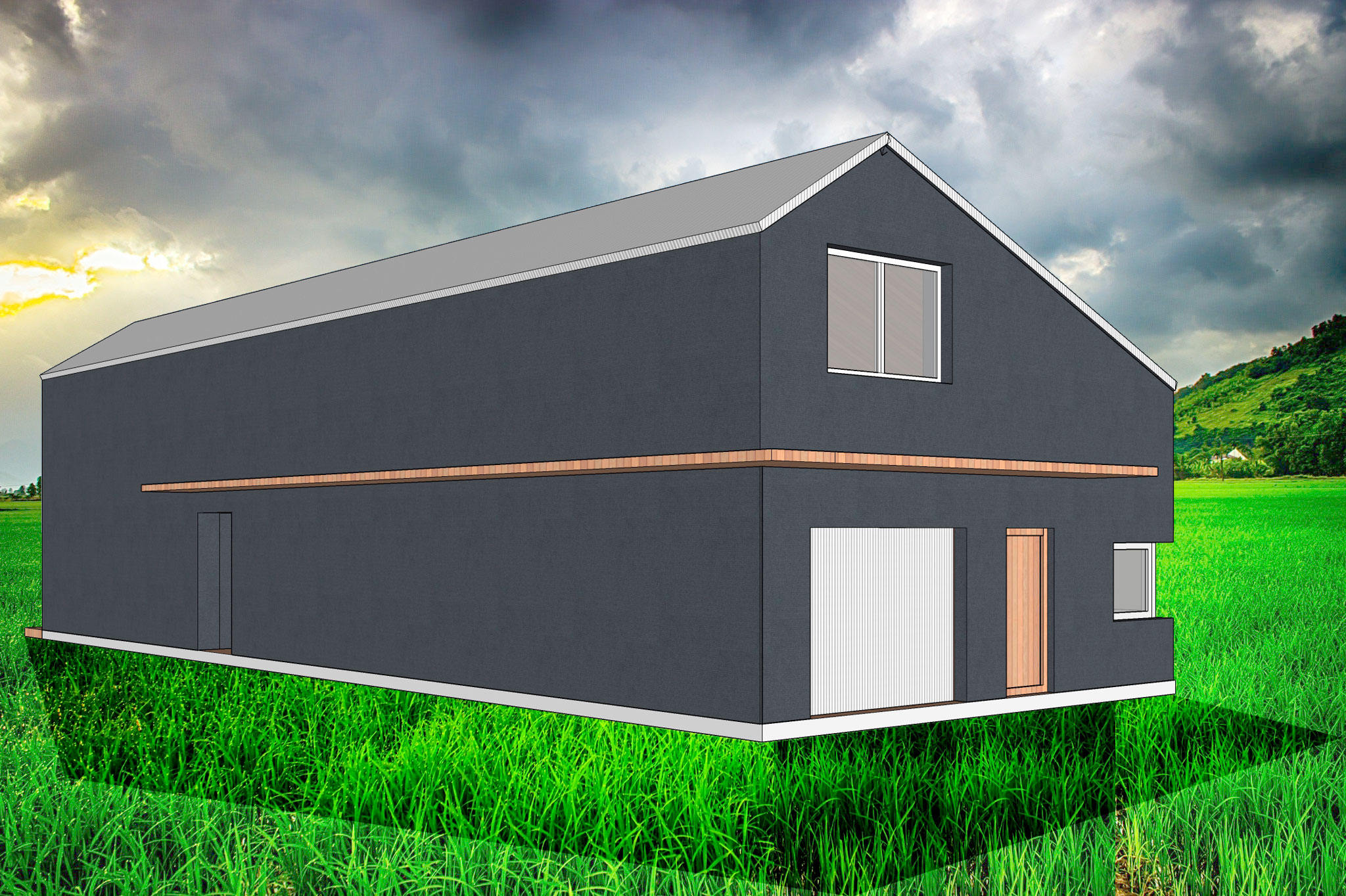 Dach – dwuspadowy, nachylenie 25°, więźba drewniana, kryty blachą